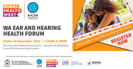 Nov 18 WA Ear and Hearing Health Forum- Perth 8:30 am - 5:00 pm Notre Dame Fremantle Event Details Get Directions
