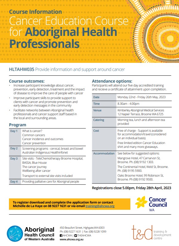 KAMS BroomeBROOME ONE DAY WORKSHOP Presented by Eartrain, AHCWA, Hearing WA, RHW & KHPN TOPICS INCLUDE: • Otoscopy • Video Otoscopy • Ear Irrigation/Tissue Spearing/ Effectiveness of Earwraps • Tympanometry • Tympanometry 1KHZ • Otoacoustic Emissions (OAE) • The effectiveness of ear wraps for keeping ears dry • Awareness of the Signs and Symptoms • Treatments • Specialist Referrals THURSDAY 22 MAY 2025 | 9.00am–4.00pm KAMS 27 Napier Terrace, Broome Register HERE